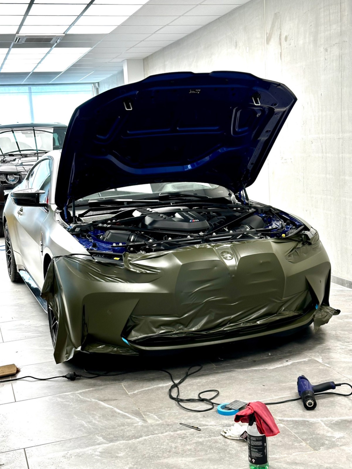 D’origine bleue, cette BMW M4 Compétition a totalement changé de personnalité avec notre covering vert militaire mat ????